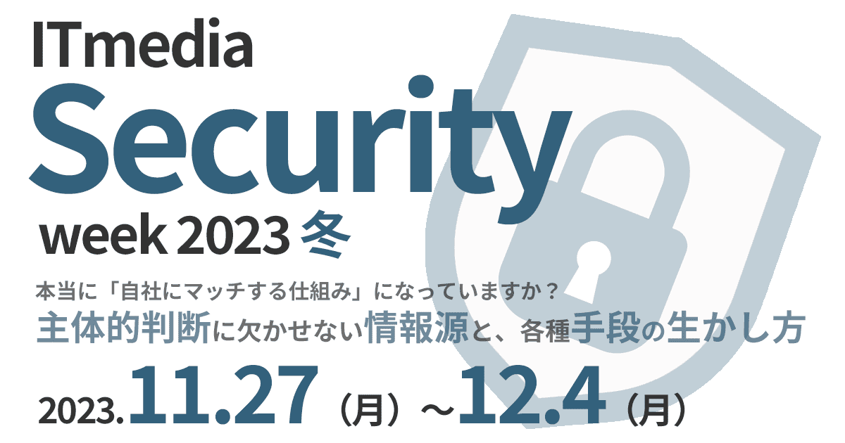 2023年11月27日(月)~12月4日(月)に開催される「ITmedia Security Week 2023 冬」 に出展します。