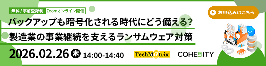 【2/26(木)Webセミナー】バックアップも暗号化される時代にどう備える?製造業の事業継続を支えるランサムウェア対策