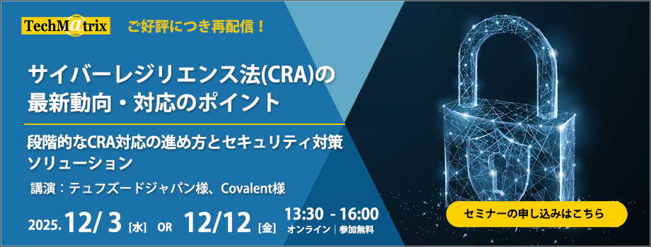 ご好評につき再配信!12月3日(水)・12日(金)開催「サイバーレジリエンス法(CRA)の最新動向・対応のポイント」セミナー