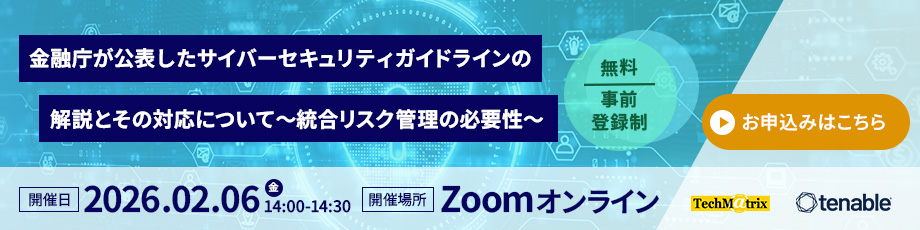 2025年6月に開催した「金融庁が公表したサイバーセキュリティガイドラインの解説とその対応について~統合リスク管理の必要性~」と題するオンラインセミナーを、2026年2月6日(金)に再配信いたします。