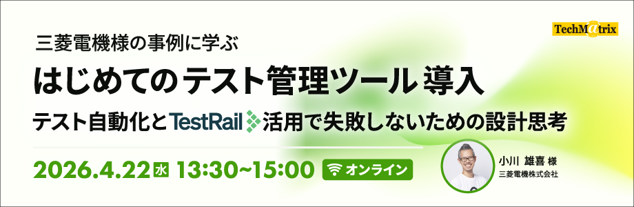 2026年04月22日(水)開催 三菱電機様の事例に学ぶ:はじめてのテスト管理ツール導入~テスト自動化とTestRail活用で失敗しないための設計思考~