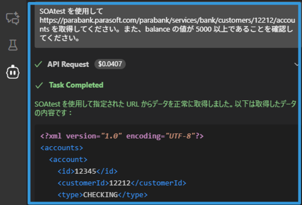 自然言語で指示するだけで任意のAIエージェントからSOAtestを呼び出してAPIテストを実行し、結果を確認できるようになりました。あらかじめSOAtestのテスト資産を作っておく必要がなく、自然言語の指示に沿ったAPIテストを実行できるため、素早く検証ができます。