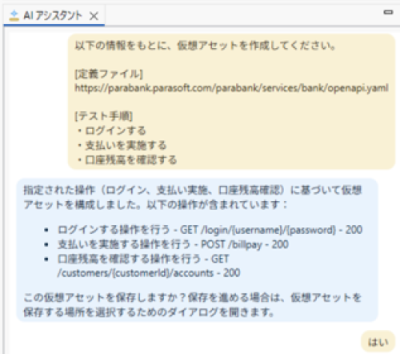 チャット形式でテスト資産を生成するAIアシスタントも進化し、自然言語でスタブを生成できるようになりました。なお、テストドライバーの生成は、前バージョンから対応しています。