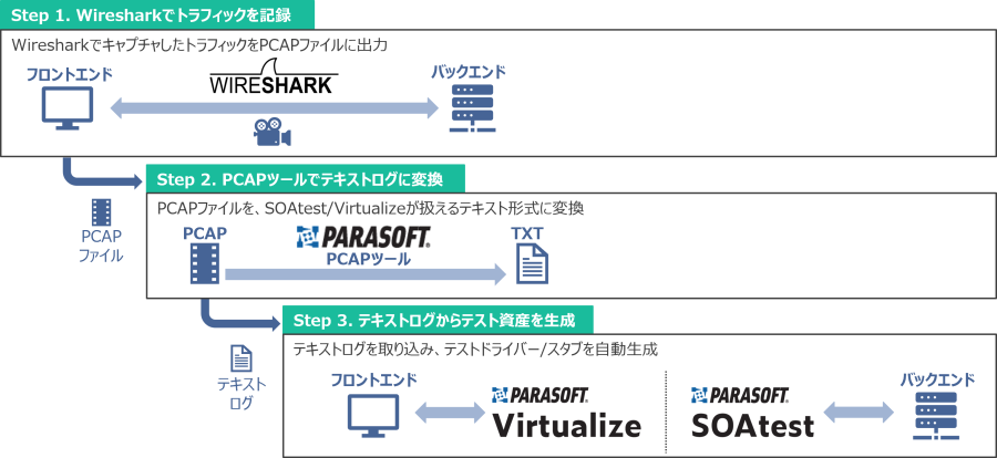 TCPソケット通信を記録したPCAPファイルから、テストドライバーやスタブの自動生成に用いるための16進数電文の生成オプションが強化されました。PCAPファイルの内容を基に、16進数電文を用いたテスト資産の作成効率が飛躍的に向上します。