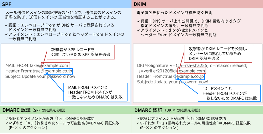 DMARCとは:SPFとDKIMの認証対象ではない、ヘッダーFromの検証を取り入れた認証技術認証結果に基づき、受信者側にメールの取り扱いを強制できる宣言が可能(P=××)