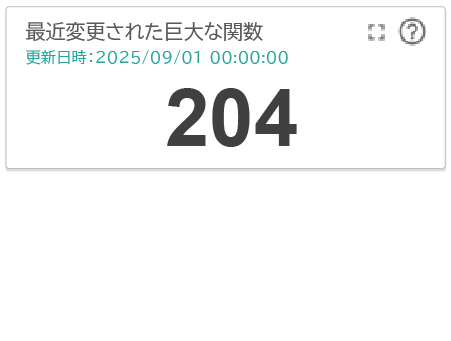 最近変更された関数のうち、もっとも規模が大きい関数の行数を表示します。巨大な関数は、修正にともなう不具合混入のリスクを高めます。