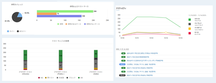 テストケース、テスト結果、エビデンス、レポートなどテストに係わる成果物をオンラインで一元管理します。Excelなどの表計算ソフトを使ったファイルベースのテスト管理から脱却し、チームでのテスト活動の効率化を促進します。