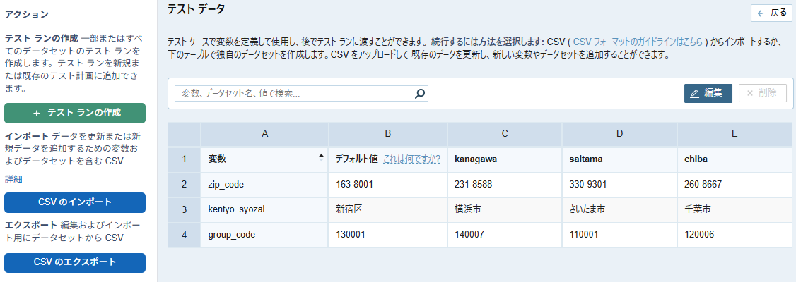 テストデータをパラメーター化することによって、1つのテストシナリオを複数の異なる値で実行することが可能になります。仕様や仕向けが異なるテストケースについて、値をパラメーター化することで、似たようなテストケースを複製してメンテナンスする必要がなくなります。